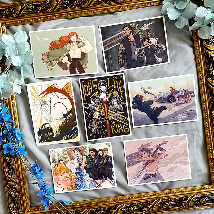 Collection of 5x7 size prints inspired by FFXV (and bonus Florence). Prints are on light weight cardstock. Some alternate sizes available in main shop.