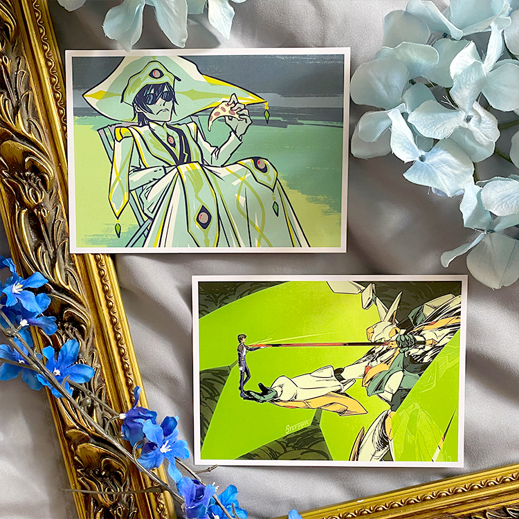 5x7 prints inspired by Code Geass on light weight cardstock. 11x17 Suzaku print available in main shop.