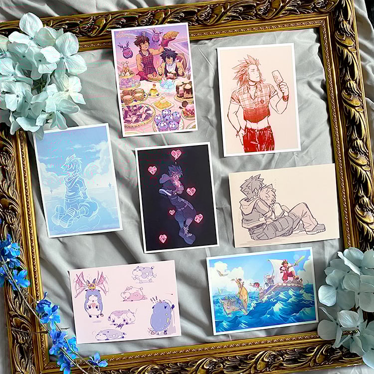 Collection of 5x7 Kingdom Hearts inspired prints. All prints are light weight cardstock. Alternate sizes for some available in main shop.