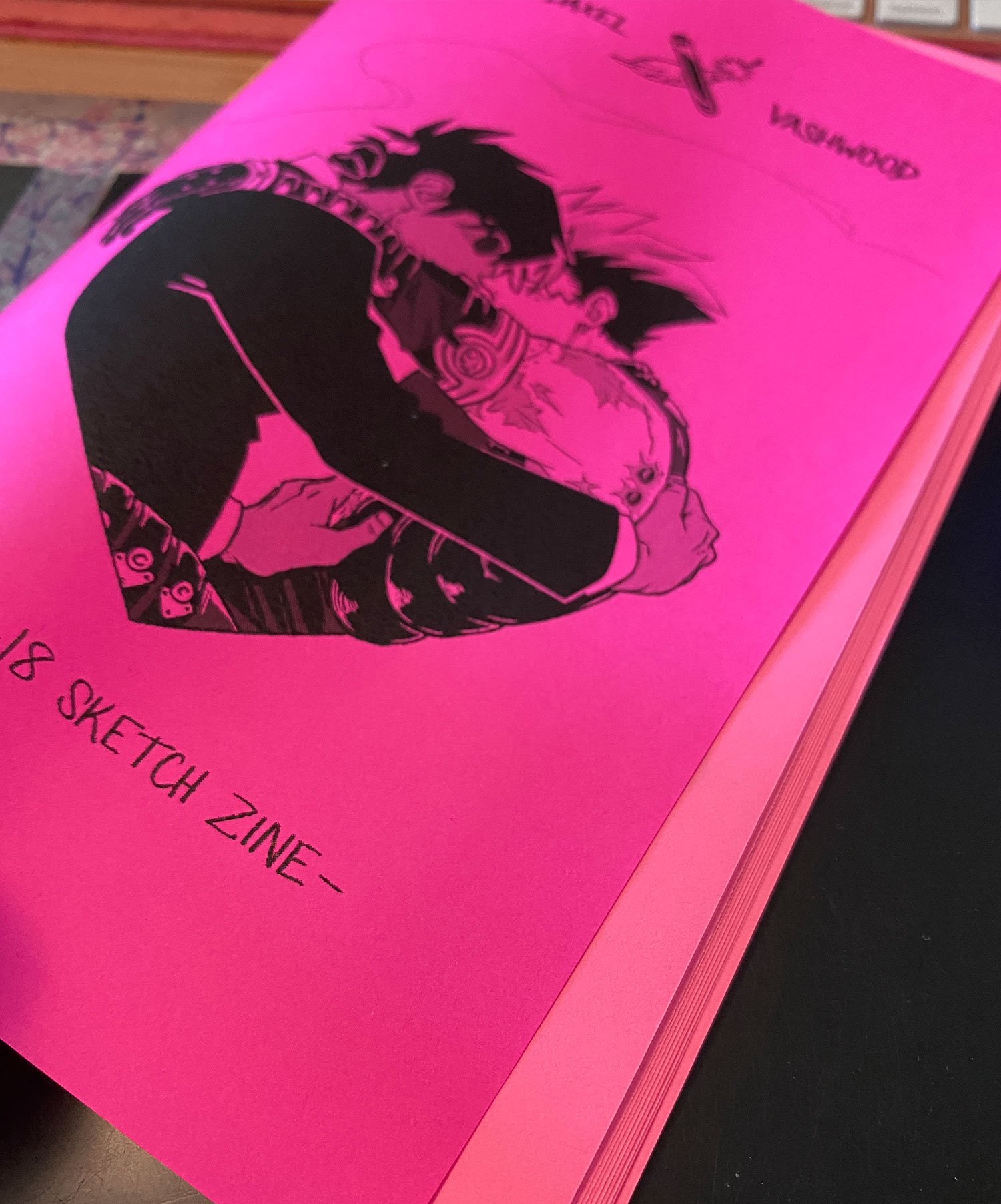 THIS ZINE CONTAINS MATURE THEMES. Home printed and staple bound zine. Vashwood/Wolfvash. 44 pages.